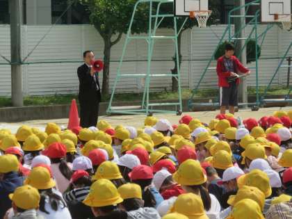 子どもたちは、先生の指示をしっかり聞いて、すみやかに避難していました。約900人もの子どもたちが、すみやかに避難している姿は、すばらしかったです。