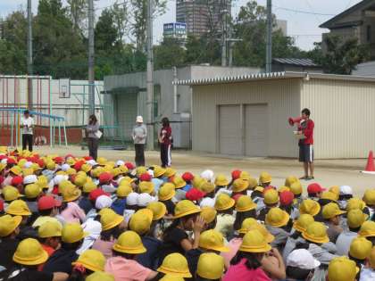 「4時間目の学習中、近畿地方を中心に強い地震があり、直ちに避難場所へ避難する必要がある」という設定でした。また、「避難してから揺れがおさまった後、津波の恐れがあるため、校舎内の高いところへ避難する」訓練をしました。