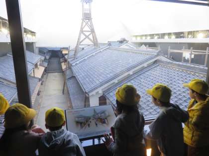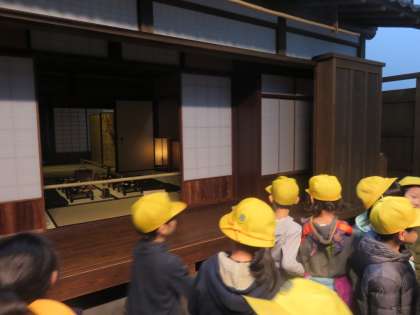 社会科「今にのこる昔とくらしのうつりかわり」の学習をしている子どもたちは、興味津々で見学をしていました。実物大に復元された江戸時代の街並みを歩いていた子どもたちは、