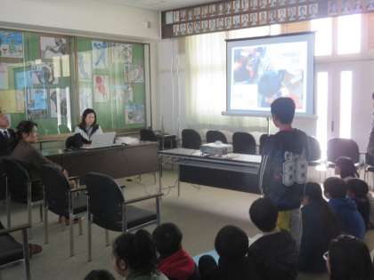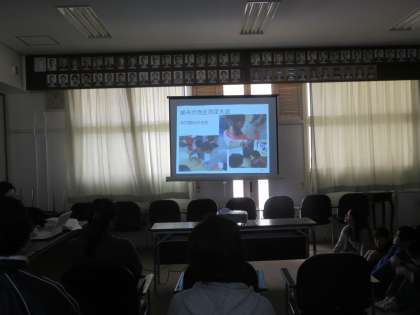 今日、学校歯科医の先生・保護者・教職員が集まっての学校保健委員会が行われました。健康委員会の子どもたちは、今日まで取り組んできた活動について元気に発表しました。