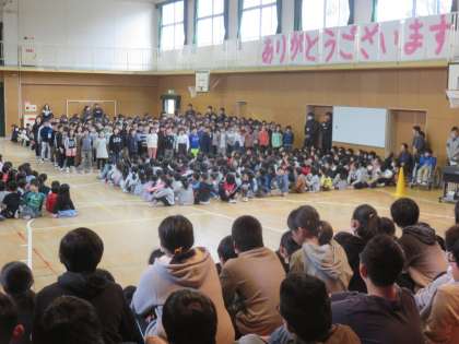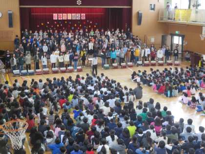 6年生からはお礼として、「ピースサイン」の大合奏と、「友〜旅立ちの時〜」の大合唱がありました。最高学年らしいすばらしい合奏とキレイな歌声を披露してくれた6年生、本当にありがとうございました。