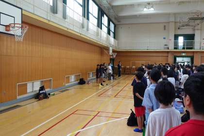 今日は朝早くから集まり、出発式がありました。みんなわくわくした表情で、林間学習を楽しみにしている雰囲気が伝わりました。話を聞く姿勢も素晴らしかったです。