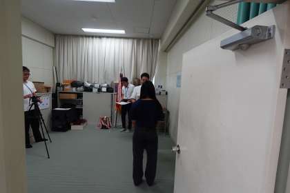 毎週月曜日は児童朝会があります。暑さや寒さが厳しいときは、校内放送システムを使ったテレビ朝会を行っています。集まっていなくても、テレビ越しでも、しっかりと話を聞くことができるように指導しています。