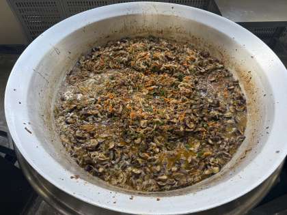 マーボーなすに使用する豆板醬は、油で炒めて風味を増しています。