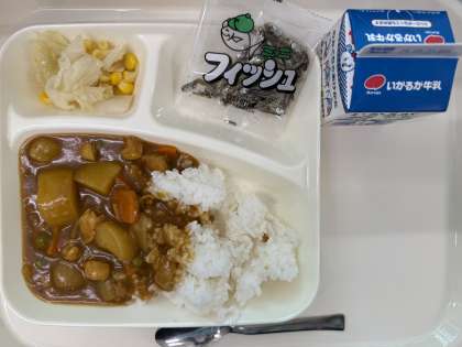 今日は、子どもたちが大好きな「チキンカレーライス」です。