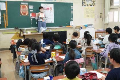 正しい歯の磨き方などを歯科衛生士さんに教えてもらいました。みんな鏡を見ながら自分の歯を真剣に磨いていました。