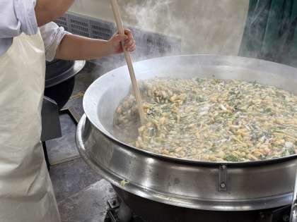 給食のうすくず汁は、葛粉ではなく片栗粉を使用して、とろみをつけています。
