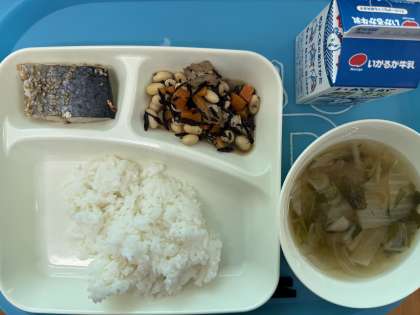 今日の献立は、健康的な食生活を送るために必要とされる食材である「まごはやさしい※」を取り入れた献立の組み合わせになっています。(*豆・ごま・わかめ(海藻)・野菜・魚・しいたけ(きのこ)・いも)