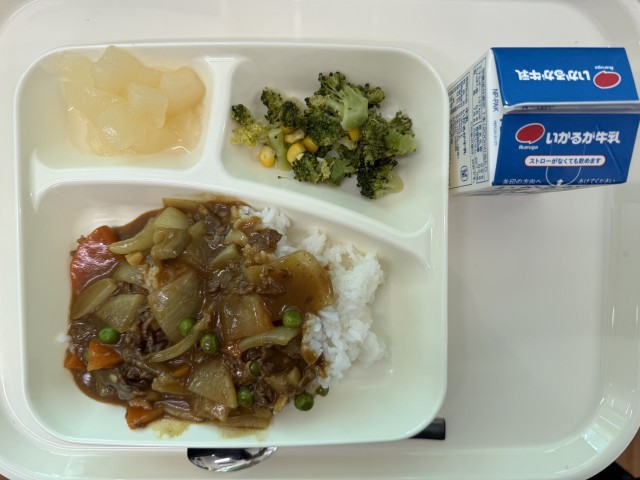 冬野菜のカレーライスには、れんこん・大根、ブロッコリーとコーンのサラダには、ブロッコリーが入っています。