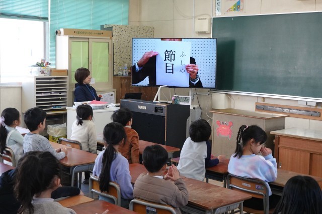 節目となる終業式。冬休みのくらしについてのお話を聞き、健康・安全に気をつけて過ごすための心がまえを確かめました。