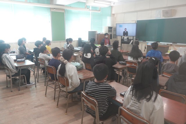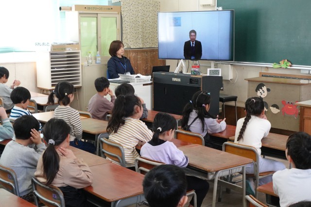 5年生の代表児童が校長先生から修了証を受け取り、この一年間の学びを締めくくりました。
