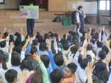 今朝の児童集会では、各たてわり班の中から1名の回答者を選び、集会委員の出題した答...