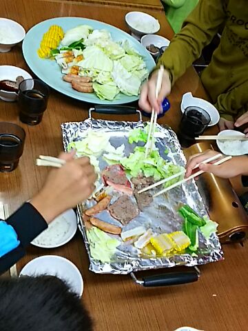 1日目の夕食は焼き肉です。みんなで美味しくいただきます!