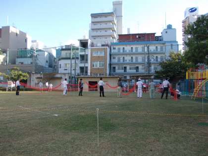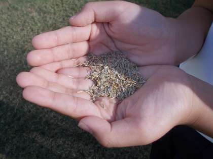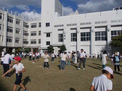 運動会終了後、味原地域総括会の皆様、PTAの皆様、教職員、児童で冬芝の種まき(冬芝オーバーシード)を行いました。多くの皆様のご協力のおかげであっという間に終了しました。種まきの後、鳥よけネットを張りました。約1か月間の養生期間運動場は使用できませんが、1か月後には、青々とした冬芝が見られます。楽しみにしていてください。