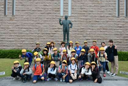 10月24日(木) 5年生は社会見学で「安藤百福発明記念館」に行きました。世界で初めて発明されたチキンラーメンがどのように作られたのか、工夫や歴史を学ぶことができました。また、チキンラーメンファクトリーでは、小麦粉をこね、手回し機械で生地をのばし、麺を切って、世界に一つだけのオリジナルチキンラーメンを作りました。麺を揚げてもらい、自分で描いたパッケージに詰めてもらいました。できたての麺のかけらを試食した子どもたちは「美味しい!!」と目をキラキラさせていました。自分で作ったチキンラーメンの味は、また一段と美味しいと思いますので、お家で一緒にお楽しみ頂きたいと思います。