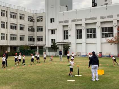 11月22日(金)に、オリックス・バファローズから4名のコーチに来ていただき、ティーボールを教えていただきました。