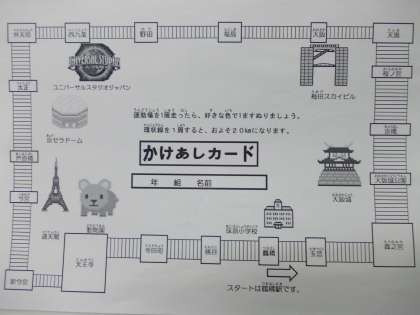初日から自分のめあてを決めて、運動場をもくもくと走っている児童も見られました。鶴橋駅がスタートになっている『JR環状線がんばりカード』を使って「もう、森之宮まで行ったよ」と、笑顔で教えてくれる子もいました。