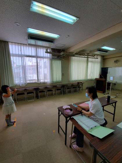 分散登校が2週目となりました。今週は、午前午後のグループを先週と入れ替えて時間帯を設定しています。先週から最高気温が30度を超える天候となっているため、熱中症に十分注意しながら活動しています。また、検査・健診については、換気を十分に行うこと、密集を避けること、使い捨て遮眼子の使用やヘッドホンの消毒などの感染症予防策を講じて内科健診、視力検査、聴力検査を順次実施しています。