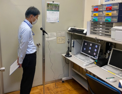 本日の児童朝会では職員室から各教室に一方向で講話や生活目標等を伝えていますが、今後は学校教育のさまざまな場面で、双方向通信も取り入れながら活用していきたいと思います。