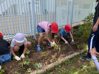 大きなさつまいもが見つかると、わっと歓声があがり、次々と出てくるさつまいもに感動していました。これからも生き物を大切に育てながら、学習を深めていきます。