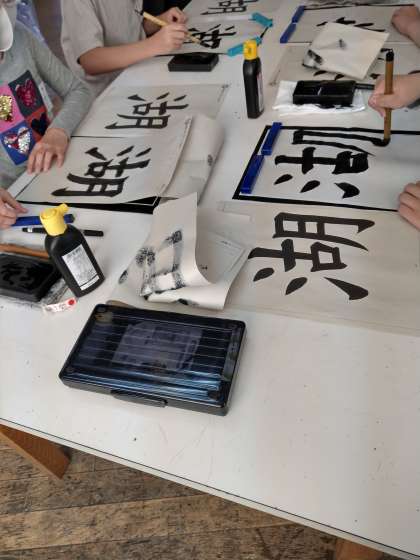 今日から新たな学年での学習がスタートしました。6年生は習字に取り組み、立派な文字を清書していました。