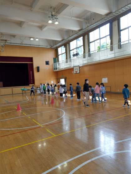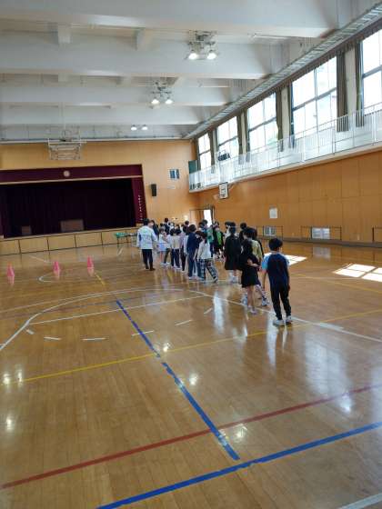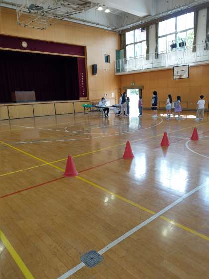 体育館で、できる限り密を避けて間隔をあけて実施しました。