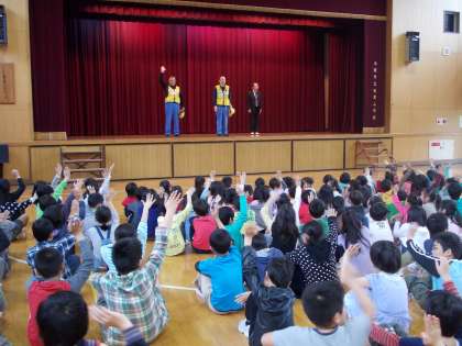4月20日(月)天王寺警察や区役所の安全パトロールの方々にお越しいただき、1年生に安全教室を実施していただきました。