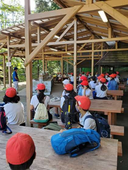 10月11日(月)、今日は6年生の自然体験学習です。午前中の活動は奈良県立野外活動センターでのネイチャークラフトとオリエンテーリングです。