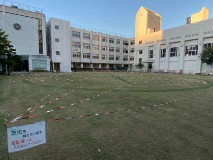 約1か月間、冬芝の養生期間として運動場は使えなくなりますが、11月には運動場一面がまた緑のじゅうたんのように冬芝が成長することと思います。お楽しみに。