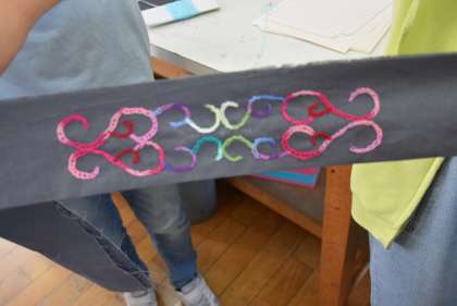 5・6年生は、総合的な学習の時間にマタンプシ(アイヌの鉢巻き)を制作しています。ひと針ひと針、真剣な表情で縫い進める子どもたちの姿が見られます。
