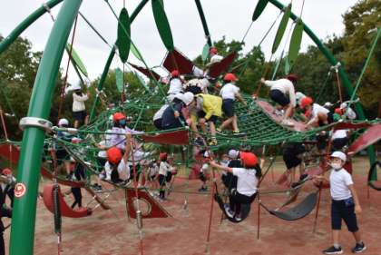 子どもの森では、時間を忘れるほどアスレチック等の遊具を楽しみ、学校生活だけでは味わえない、貴重な時間を過ごすことができました。