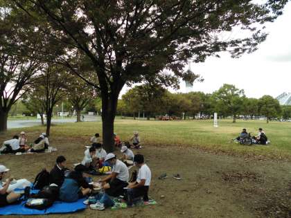 5年生は、大芝生でみんな遊びも行いました。学校から持参したドッジビーで思う存分芝生を駆け回り、気持ちよさそうに体を動かしていました。