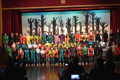 子どもたち一人一人が活躍する場面があり、堂々としたセリフと美しい歌声が講堂に響き渡り、高学年ならではの迫力ある素敵な舞台発表となりました。