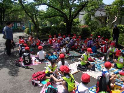 シロクマやゾウやライオンをみんなで見た後、8グループにわかれて、自分たちで自由に見学する時間がありました。2年生は1年生をリードして1人も迷子になることなくグループ活動することができました。