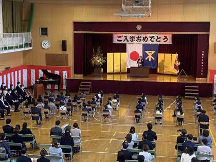 「お友達と同じクラスになったよ」「勉強をがんばりたいな」子どもたちの喜ぶ声が届く入学式となりました。