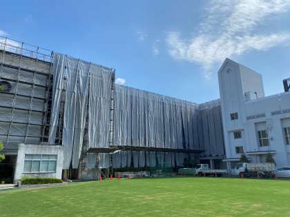 外壁改修工事の足場の組み立て作業が進んでいます。