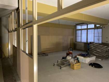 図工室は2部屋に分けられ、壁や窓枠、エアコンなどが徐々に整備されています。