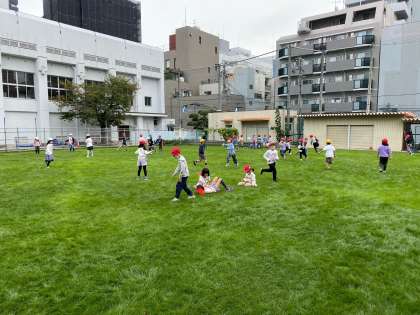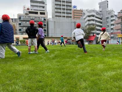 久々に鬼ごっこをしたり、寝転んだり、ボール遊びをしたりと、思い思いに冬芝の運動場を満喫していました。