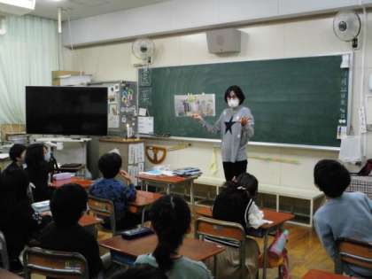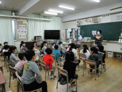 本日の2、3時間目は「お話し会」でした。天王寺図書館の職員の方々やボランティアの方々に来校いただき、各学級で本の朗読や読み聞かせをしていただきました。