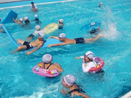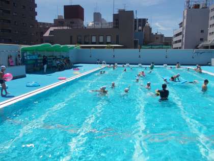 7月26日(日)PTA日曜プールが実施されました。天候にも恵まれ、絶好のプール日和でした。児童約30人と保護者が参加しました。いつものプール指導とは違い、浮き輪やビーチボール、浮き島を使って、親子で楽しいひとときを過ごすことができました。