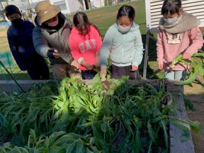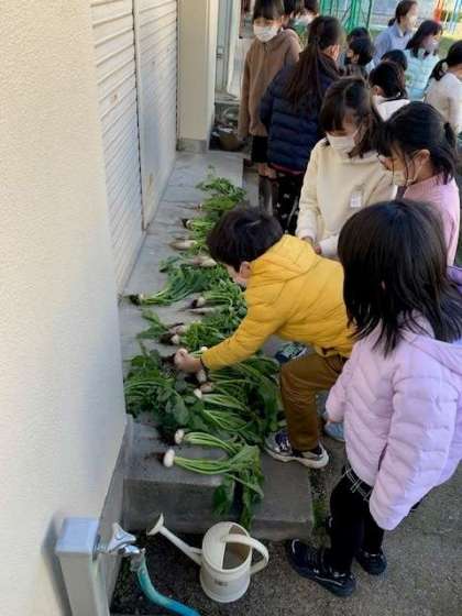 1月25日に、学習園で育てていた「なにわの伝統野菜」の田辺大根、天王寺蕪を収穫しました。