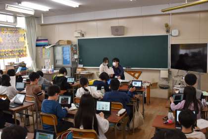 校長先生から、5年生の代表の児童に修了証が授与されました。