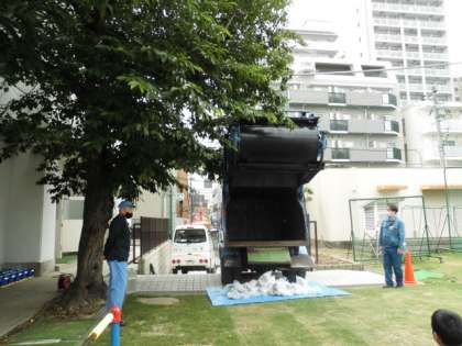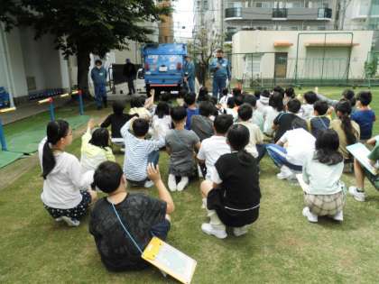 実際に近くでごみパッカー車を見たり、ごみをパッカー車に入れたりする体験をしました。
