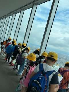 6月9日(金)、行きは、大阪環状線の鶴橋〜大阪〜天王寺を回り、環状線から見える景色を観察しました。その後、ハルカス300へ行き、展望台から遠方まで見渡すことができました。
