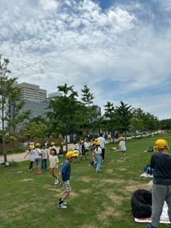その後、お弁当をてんしばで食べ、じゃんけん列車やだるまさんがころんだなどをして沢山遊びました!