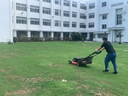 職員は芝生作業や池の掃除、学習園の手入れなど、環境整備に努めております。
