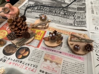小枝や木の実を使い、色や形の特徴を生かして、思い思いの作品を作りました。