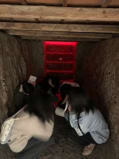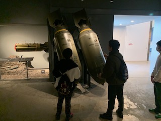 1トン爆弾の大きさや防空壕の狭さに驚いていました。