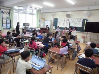 2年1・2組 国語「心にのこっているできごと発表」 音楽「けんばんハーモニカ演奏」