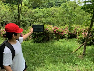 学校から持ってきたタブレット端末で景色や野草を撮影しています。